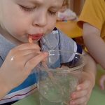 Малыши 11 группы провели интересный эксперимент! Под руководством воспитателя дети опускали трубочки в ёмкости с водой и наблюдали, как воздушные пузыри устремляются вверх.
