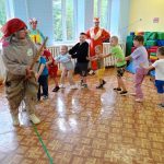Группа №2 с удовольствием пообщалась с героями сказок. С милой Пандой делали зарядку, с вредной Шапокляк угадывали названия сказок, с Незнайкой весело играли в мяч!